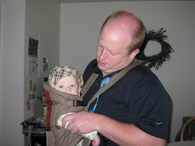 Mckay's showing what happens when Ethan is left to himself in the carrier. He sticks that little tongue out of his and licks the heck out of either side. I'm not sure if it tastes good or feels good on his mouth. Its cute- that's for sure.